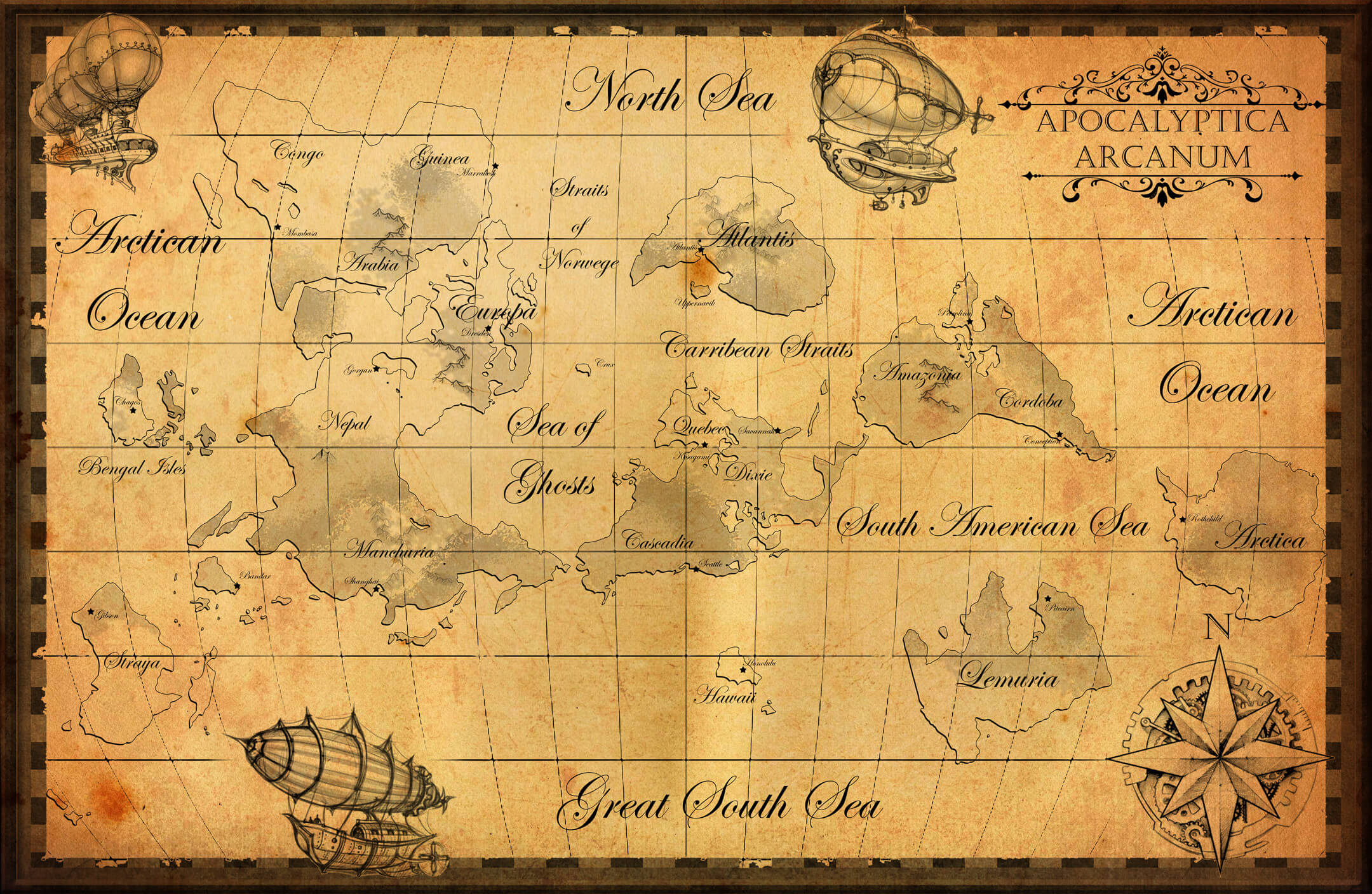 Many great cities of the old world survived the catastrophe in altered form. Some were partially destroyed and rebuilt. Others were buried, flooded, or reshaped by Shard magic. Names may have changed, borders may have shifted, but recognizability is intentional. The past is never fully gone in Apocalyptica Arcanum; it lingers in stone, street plans, and inherited memory.